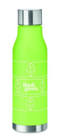 Botella en RPET con acabado de goma y acero inoxidable con tapa interior RPET y anillo de silicona.