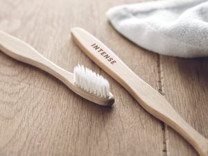 Cepillo de dientes con mango de bambú y cepillo de nilón.
