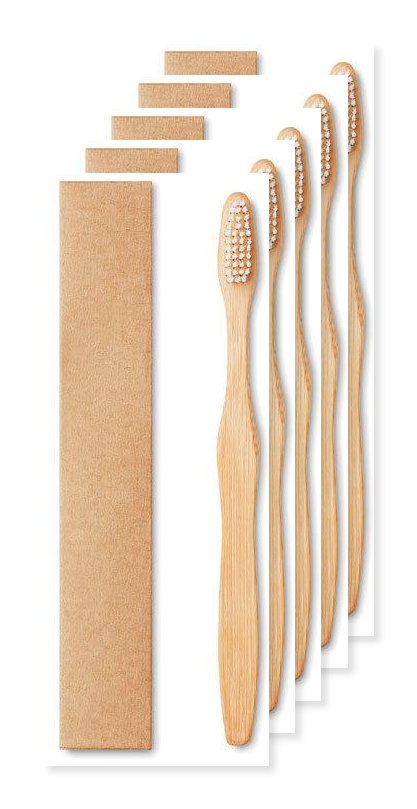 Pack de 50 GiftRetail MO9877 - DENTOBRUSH Cepillo dientes mango bambú