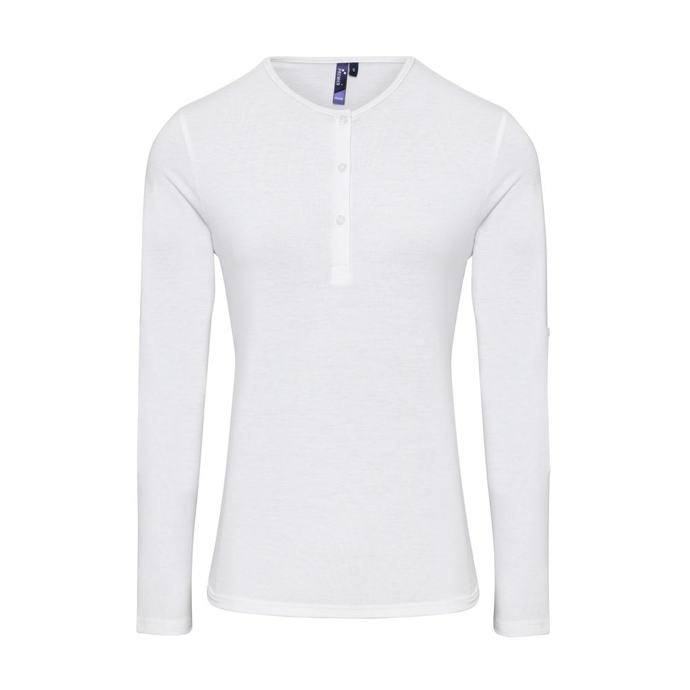 Esta camiseta presenta cuello redondo con tapeta de 3 botones , cuello y puños de canalé y manga larga que se puede remangar gracias a sus tapetas con botones.