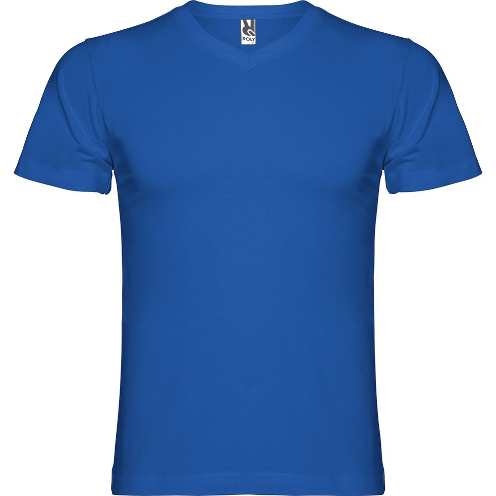 Roly CA6503 - Azul royal - Camiseta de Algodón con Cuello en V de Doble Capa