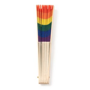 KEROS Abanico con varillas de madera y tela con estampado multicolor